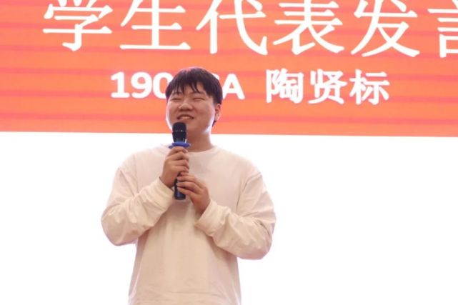 1904CA班陶贤标代表所有同学上台发言:“曾经我们不理解自己的父母,觉得他们啰嗦,觉得他们管太多,甚至有时候会跟父母发生口角,我们习惯了接受父母给予的所有东西,但是却从未想过给他们一点回报。从今天开始,学会感恩,因为感恩,这个世界才变得美好,因为感恩,世界上才充满爱。”