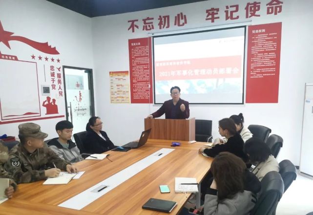 为更好的规范学院军事化管理模式,提高硅谷学子的综合素质,2021年2月22日,湖南硅谷高科软件学院荣誉院长王小平组织全体班主任老师、教导大队负责人在党建室召开了“2021年军事化管理动员大会”。