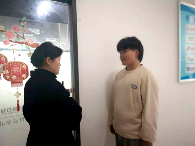 图丨梁金梅老师和学生沟通
