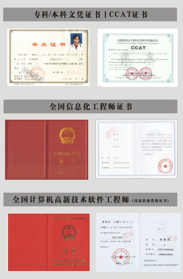颁发国家承认的大学学历文凭(国家教育部备案,可网上查询);颁发全国信息化工程师项目(CCAT:信息产业部领导下组织实施的国家级IT专业政府认证体系)。