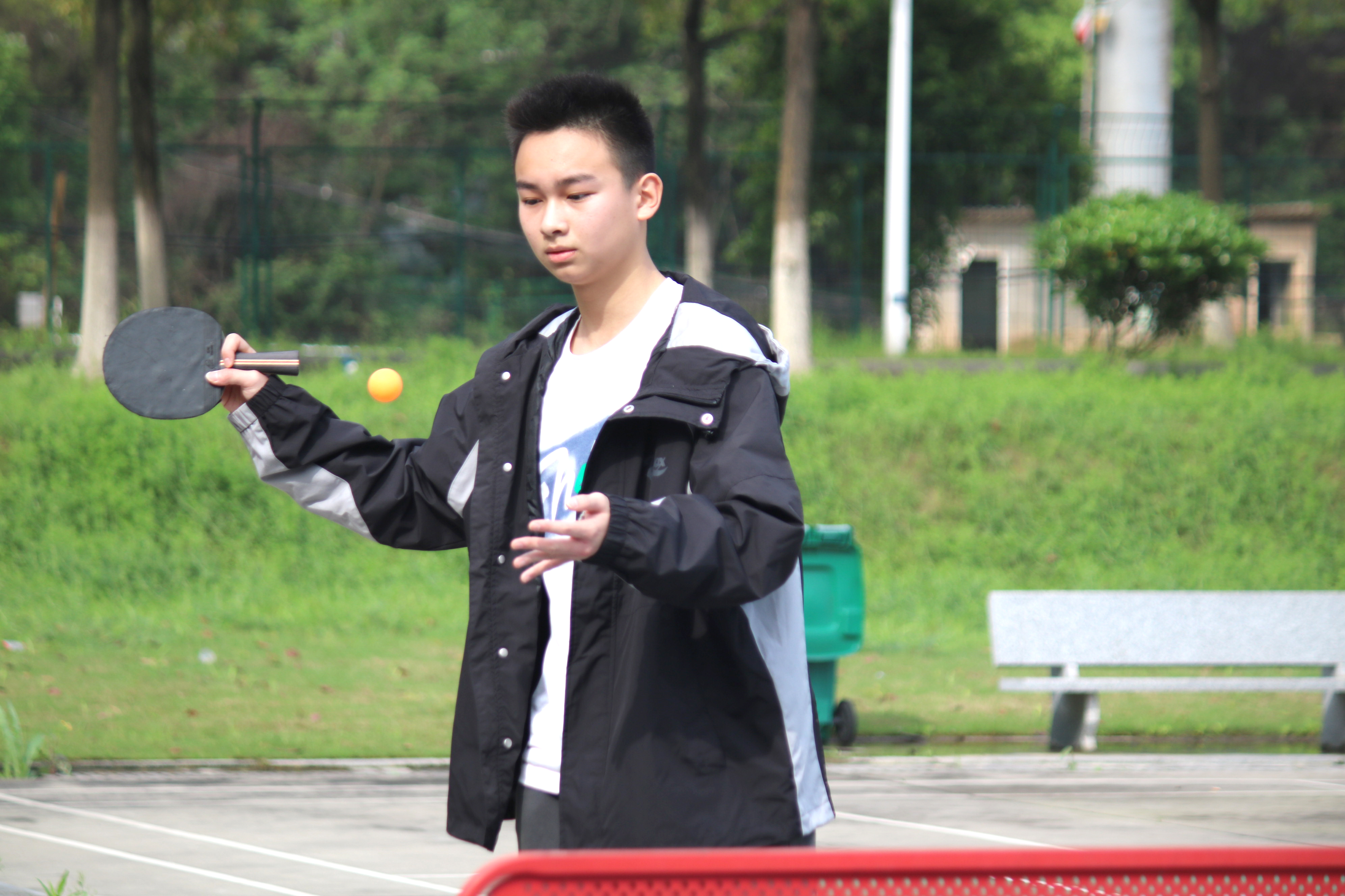 乒乓球在球桌上快速跃动