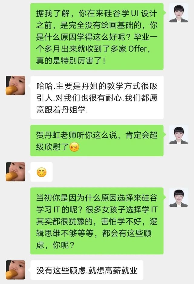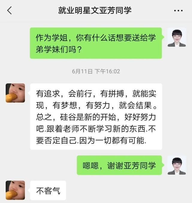 文亚芳是2021年5月从硅谷毕业的,毕业之后凭借着出色的学习履历、获奖荣誉和在学校做项目的经验,毕业仅一个月就收到了多家公司的Offer,据贺丹虹老师所说,文亚芳目前就职的这家公司,是用高薪把她挖过去的。
