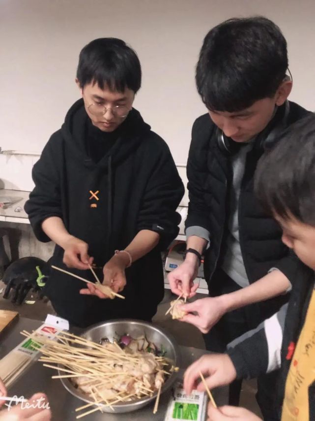 同学们集聚在一起有说有笑的为美食大餐准备食材,洗菜的、切菜的、炒菜的,每一个环节都分工到位,安排的井井有条,硅谷的学子,真是文能敲代码,武能进厨房呢!